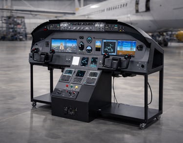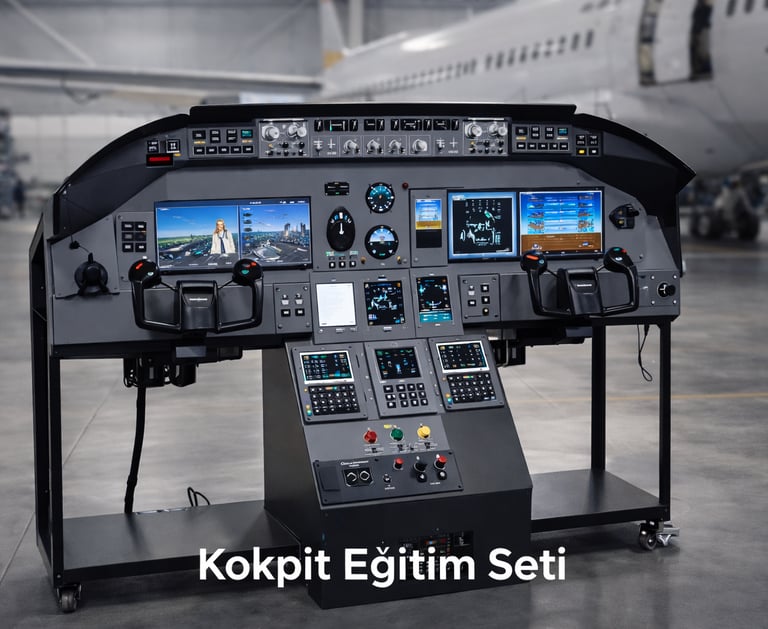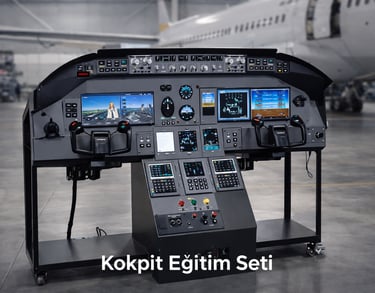 Kokpit Eğitim Seti, hava aracı kokpitinde yer alan temel uçuş, aviyonik ve kontrol bileşenlerinin tanıtılması, çalışma prensiplerinin anlaşılması ve bakım–kontrol süreçlerinin uygulamalı olarak öğretilmesi amacıyla tasarlanmış entegre bir eğitim platformudur. Gerçek kokpit mimarisine uygun olarak yapılandırılan set, teorik bilgilerin pratik uygulamalarla pekiştirilmesini sağlar.